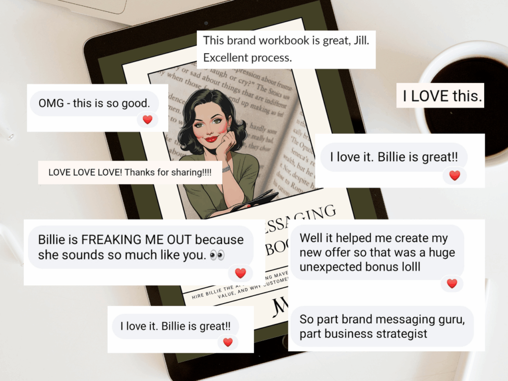 If you’re realizing your brand messaging has fallen behind your growth, you don’t have to unpack this alone! I created Billie, my AI messaging strategist for this exact moment. She’s trained to ask the deep questions, extract what’s changed, and help you articulate the next evolution of your messaging strategy.